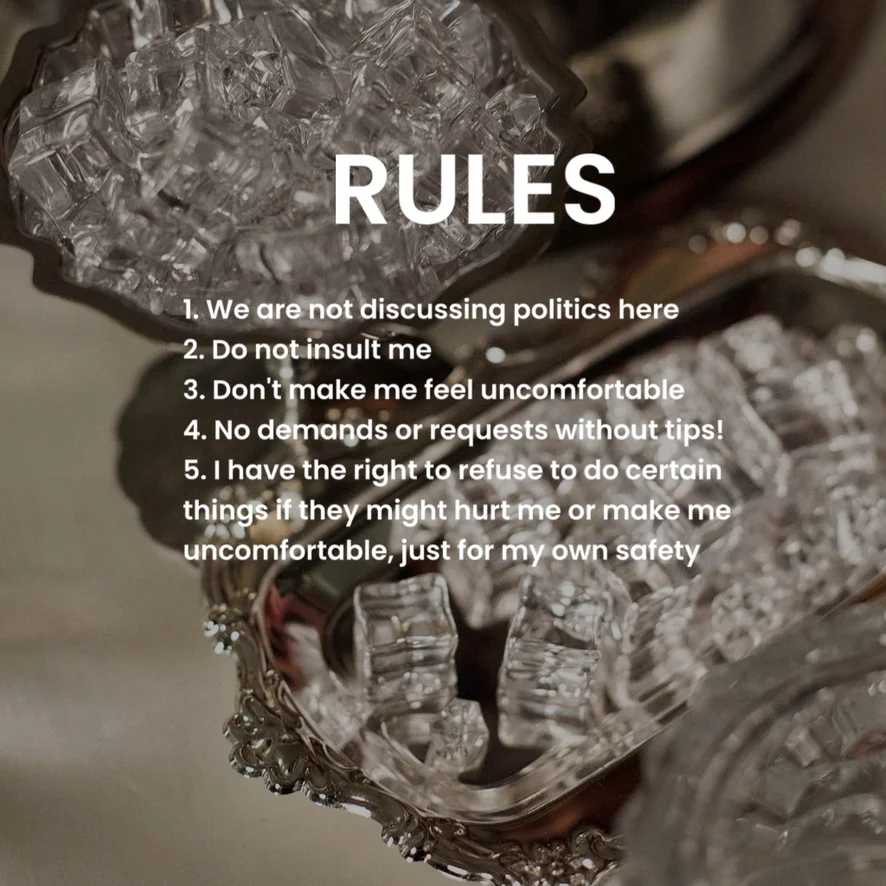 Ахэгао, Верблюжья лапка, Каблуки, Нейлон, Раком, Стриптиз, Тверкинг, Фут-фетиш, Шлепки, Шоу с маслом, Эротические танцы, Засвет, Инструкция по дрочке, Под юбкой, Поза наездницы, Топлесс, Мастурбация пальцами, Минет
